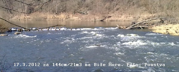 jez přenést vľavo vysoký (m) 1,6 náhon vpravo, !! Bílá Hora (za vhodných podmínek sjízdný po přelivné ploše) a nasleduje za 300 m peřej 1,3 km |