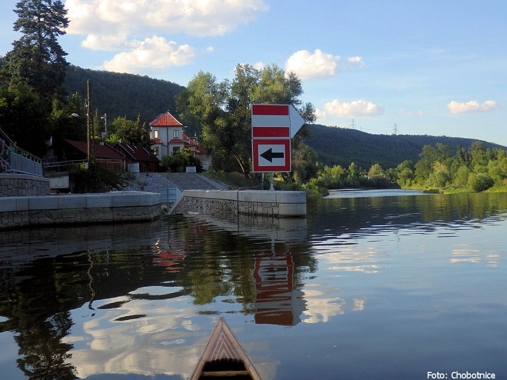hať s prepustí vpravo přenést vpravo vysoký (m) 1,4 náhon vľavo, (sjízdný nově vybudovanou sportovní propustí) táborisko Dobřichovice 0,2 km |
