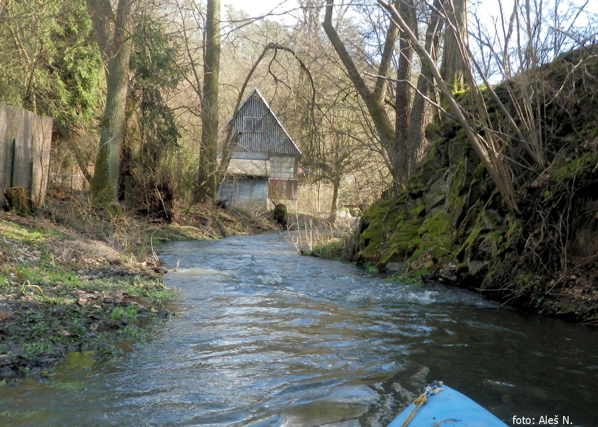 jez výpust z rybníka most cestný Lodenice obvyklý začiatok plavby,  1,4 km |