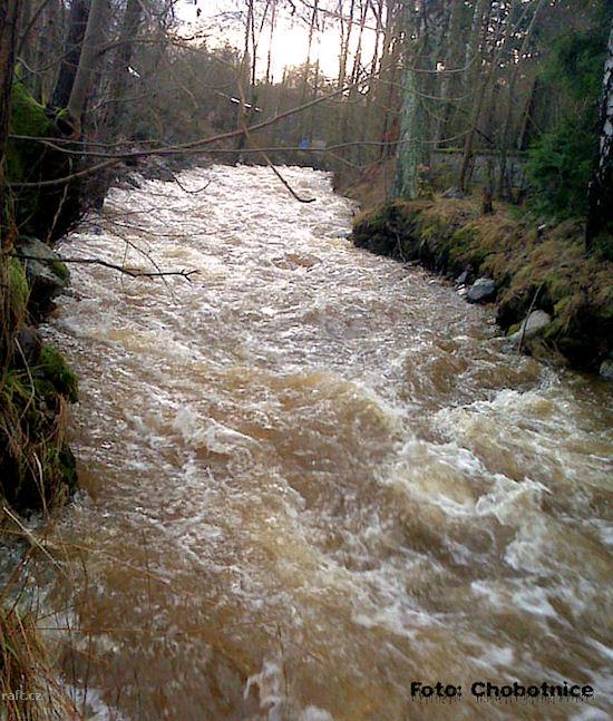 Včera za stavu 90 cm z výtoku ejpovického jezera do Nadryb na Berounce. Přenášeno 5 stromů (některé ...