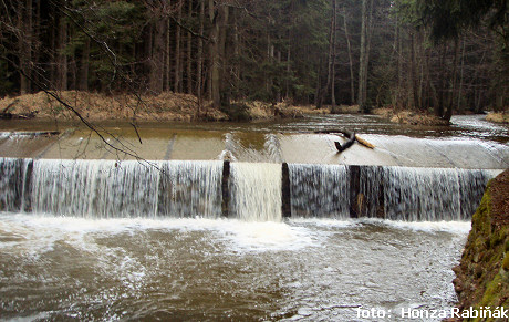 jez (stupeň) balvanitý skluz - není dopředu vidět, prohlédnout od jezu výše! 0,1 km |