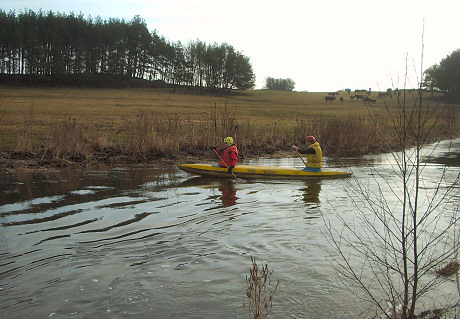 přítok vľavo Skalice obvyklý koniec plavby, vľavo, nutno vynést 800 m vľavo, k rekreační středisko u Skalice za nízkého stavu priehrada Orlík, stále hezké peřeje, problém s vynesením lodí zpět, lze také dojet po přehradě do Zvíkovského Podhradí 3,0 km (GPS: 49.4158672,14.1484908) |