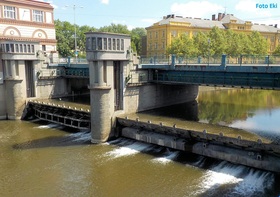 ústi do Labe na ř. km 157,9 a nasleduje za 500 m vpravo, proti proudu jez most cestný vlaková stanica Hradec Králové 1,7 km vpravo,