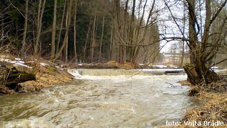 r.km 3,9 Zbytky rozbořeného jezu nad Josefodolem