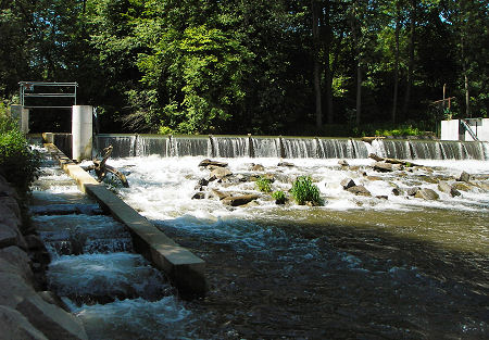 jez (stupeň) bez možnosti přenést. V náhonu nízký most cestný a nasleduje za 300m jez přenést vpravo MVE. Za MVE dát na vodu až za tenis. kurty u most pešej nebo lávka , kde jsou schody k řece. Zde je obvyklý začiatok plavby, )