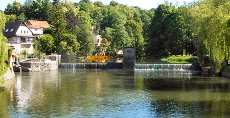 most cestný (místní) obvyklý začiatok plavby, a nasleduje za 2x jez (stupeň) (kamenný práh) sjazdné