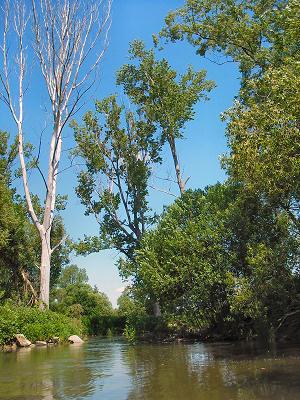 dvě ramena - v levém po a nasleduje za 300 m rozvalený jez