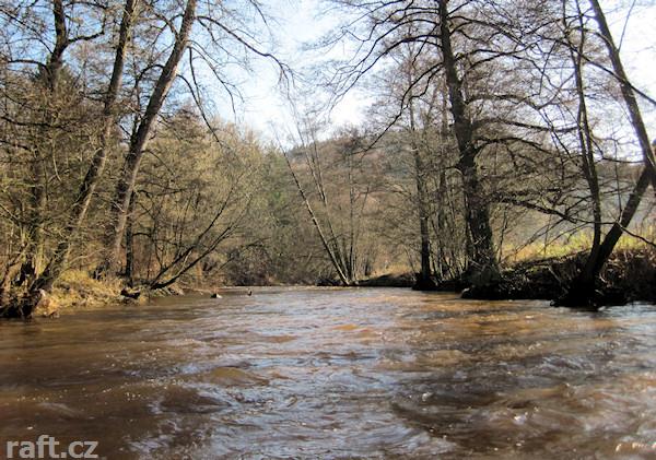 Dne 20. dubna - ještě parádní plavba, Slatina 65 cm, ale asi 1 km pod Rýzmburkem napříč celým řečišt ...