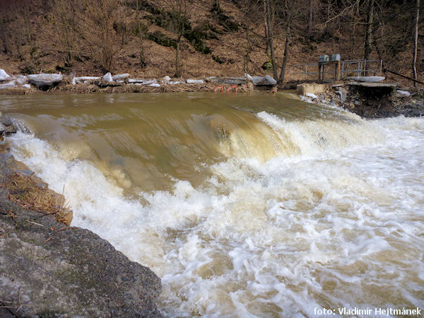 jez vysoký (m) 1,5 po prehliadnutí sjazdné náhon vľavo, peřej WW II a nasleduje za 100m most pešej nebo lávka 1,7 km |