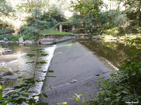 most pešej nebo lávka 2 jez (stupeň) sjazdné !! ďalej hluboké lesnaté údolie 2,0 km |