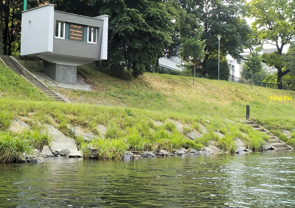 jez (stupeň) !! most cestný !! [58] vlaková stanica Ostrava hl. n. 1,6 km vľavo, obvyklý koniec plavby, 0,6 km (GPS: 49.8552642,18.2865325) |