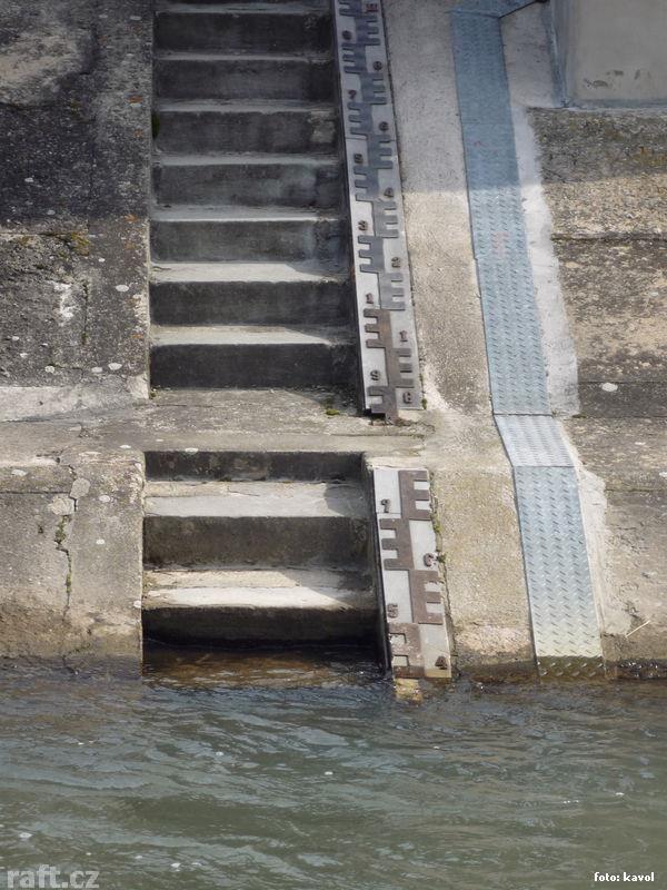Pozor před Maloměřickým mostem je nově vyskládaný brod z betonových panelů, jejich pozice se mění v ...