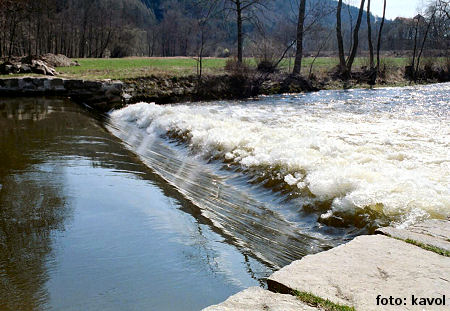 jez přenést vľavo nebo vpravo vysoký (m) 2,5 nezjazdné, slalomová trať pod jezem 0,6 km |