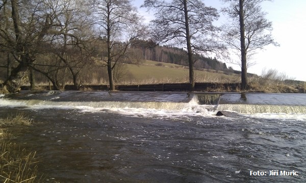 most cestný (místní) jez (stupeň) !! a přítok vľavo náhon elektrárny 1,4 km |
