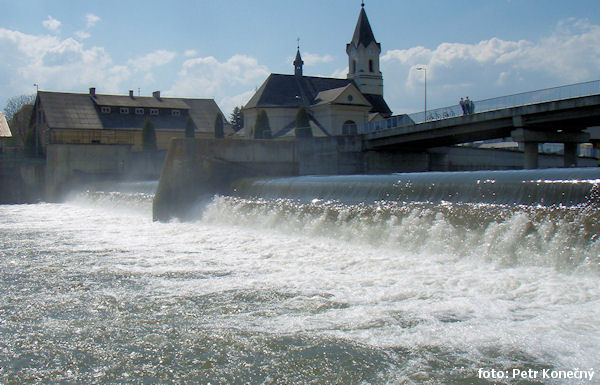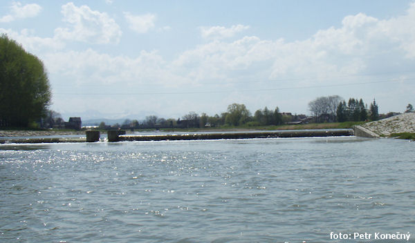nezjazdné, vysoký (m) 1,2 náhon vpravo, (dle stavu vody je možné lodě přetáhnout vľavo, přes přepad), most cestný