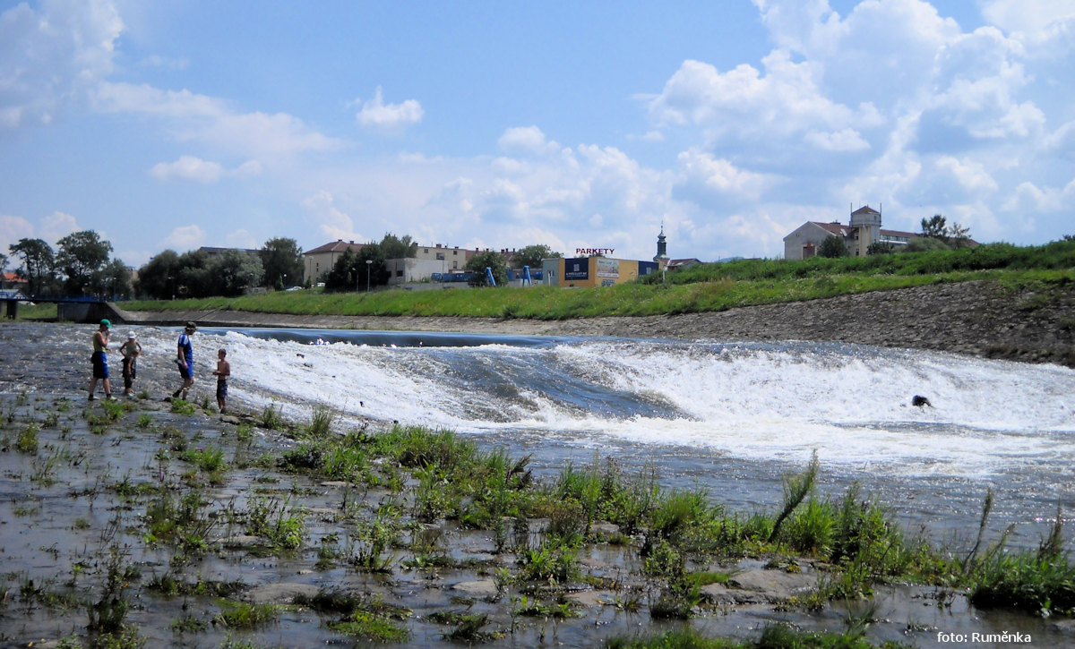 jez přenést vpravo dlhý náhon vľavo, most pešej nebo lávka