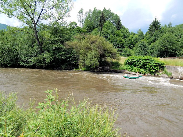 táborisko vpravo, u loděnice VK Hron obvyklý koniec plavby, 4,8 km |