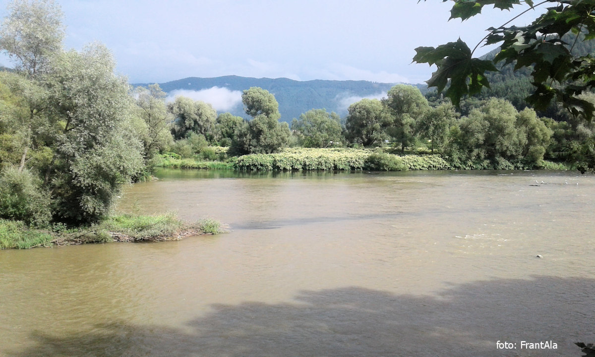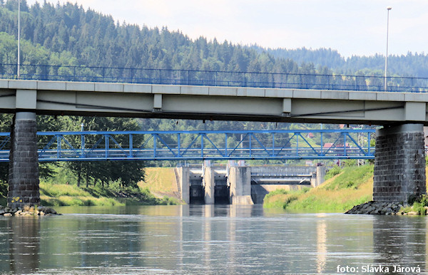 most pešej nebo lávka Istebné vpravo, jez (stupeň) !! 2,8 km |