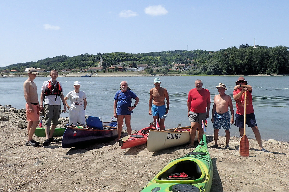 Dunaj se zde kroutí v mnoha meandrech ozdobených ostrovy. Je zde řada plážek a s nastupujícím vedrem stavíme co půlhodinu na některé z nich a koupeme se. Na břehu je spousta škeblí, některé velikosti papuče. Dva kilometry před cílem nacházíme na levém břehu čárdu, ve které jsem kdysi při láhvi rakije přečkal bouřku. Milan, jako loajální háček, je uchvácen touhou po poznání tak významného místa: bohužel čárda dnes nemůže nabídnout vůbec nic. Doplouváme tak pod železniční most a parta čeká na to, až vyběhnu a přinesu zprávu, kde se můžeme utábořit. Je to opět cíl etapy regaty TID, kde jsem již dvakrát spal. Naselenje je vlastně skrumáží víkendových domků s přilehlými pozemky, na nichž jsme při regatě dle své volby volně tábořili. Moje zkušenosti a představy selhávají: Čárda je v pondělí zavřená a z místa, kde jsem hodlal stanovat, je dílem smeťák, dílem parkoviště. Obracím se na skupinu domorodců s prosbou o radu a ihned dostáváme svolení obsadit dvě sousední parcely před víkend domky. Honza zajíždí do stínu (spí v autě) a my stavíme stany na perfektním trávníku. S projíždějící policejní hlídkou řeším povinnost pro cizince přihlásit se o takzv. bílou kartu. Policistka kamsi volá, a pak s úsměvem prohlašuje, že se nikde hlásit nemusíme a že nemusíme vůbec nic. Milan vedený neomylným instinktem nachází nedaleko kšeftík se vším, co vodák potřebuje (loď, pádlo, chlast a žrádlo, teda ty první věci už máme), a tak večer hrajeme a zpíváme. Přichází mladý Srb, donáší nám studené pivo a sám nic nechce, poslouchá písničky a potvrzuje tak fakt, jak je nám zde dobře.
