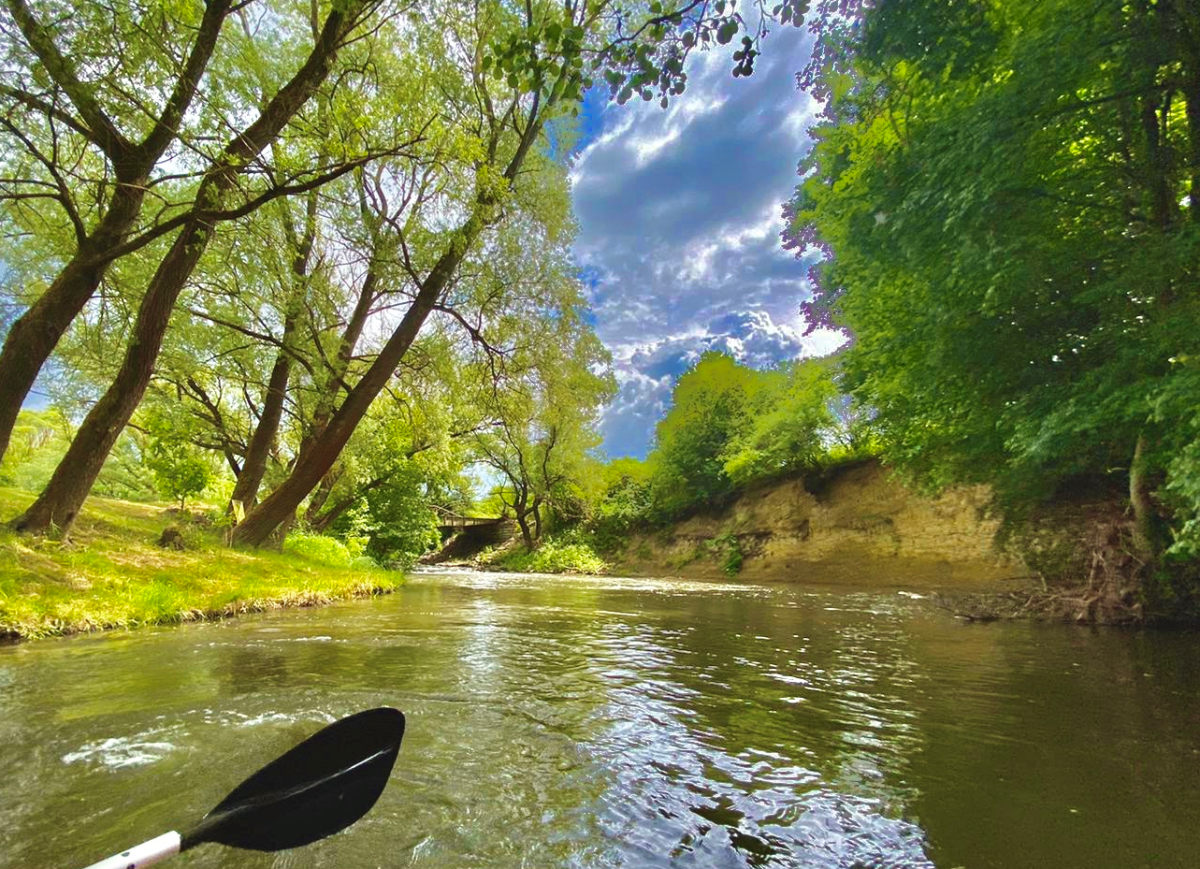 Splavujete nádhernou prírodou priamo v chránenom vtáčom území Poiplie, ktoré patrí medzi chránené územia európskeho významu NATURA 2000. Prvá možná zastávka na oddych je pri Penzióne Zlatka. Po oddychnutí pokračujete do dedinky Trebeľovce, kde sa priplavíte na stanovisko u Mravca a o niečo ďalej na stanovisko Pláž, pieskovcová stena, kde je možnosť rekreácie, pozorovania pekných scenérií a oddychu. Po zhruba 15 minútach sa plavíte pri území Volavčia kolónia, pásmo ochrany štvtého stupňa, kde v tichosti môžete v diaľke pozorovať volavky.
