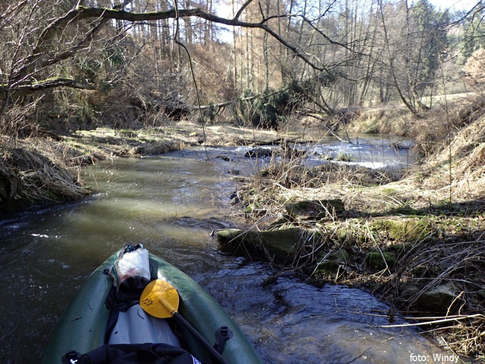 Ale pozor! Jako u každého potoka podobné velikosti je třeba nenechat se ukolébat romantickými představami o pohodové plavbě. Kdesi na síti jsem před časem našla fotky staré asi patnáct let, které slibovaly pravé zátarasové peklo! Mohu být tedy pouze příjemně překvapena, což se stalo. Ne, že by překážky nebyly vůbec. Občas přetahuji nebo obnáším, ale je to snesitelné. A samozřejmě, na některých mělčinách musím kousek pěšky.