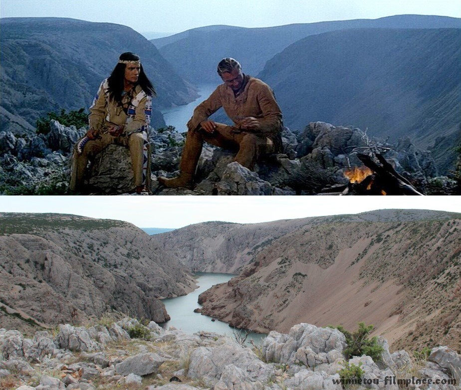 Pohled na padající vodu a okolní údolí s vápencovými skalami, které úzce lemuje řeku, dává průchod vzpomínkám na filmy o Vinnetouovi. Tady (o něco níže) v kaňonu Zrmanji byly natočeny záběry cesty ke Stříbrnému jezeru. Dívám se po kopcích v naději, že náčelníka spatřím. No, třeba budeme mít štěstí a potkáme ho.