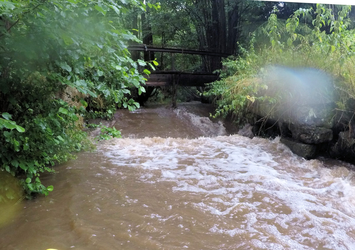 Začátek srpna je deštivý, všude to teče. Sice jsem si dal závazek, že v létě nebudu žádné úzké potoky splouvat, protože se obvykle jedná o splachovadlo, kde nejsou skoro žádné vracáky a pokud jsou, tak se do nich nedá dostat, jelikož jsou zarostlé. U Dřevíče dělám výjimku, jelikož to není žádná divočárna. Musím jednat rychle, voda začíná kulminovat a bude rychle padat dolů.