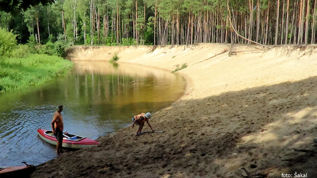 Tuto řeku nám doporučili místní vodáci při jedné z našich minulých výprav coby nejkrásnější řeku v oblasti. Varšava je skoro na dohled, a tak je říčka docela populární, což však neznamená, že na ní plují konvoje známé z Vltavy. Naopak, potkat tady i v hlavní sezóně vodáky mimo víkendy je docela vzácné. Půjčoven plastových dvojkajaků je tu sice docela dost, ale vyskládané řady lodí na břehu nesvědčí o kdovíjakém turistickém byznysu. Pravidlem, které nám připadá už v Polsku normální, je, že i na oficiálních tábořištích (przystań kajakowa, pole biwakowe) jsme většinou sami a na vodě během plavby potkáme tak jednu, dvě party polských větrníků, tedy plastových dvojkajaků.
