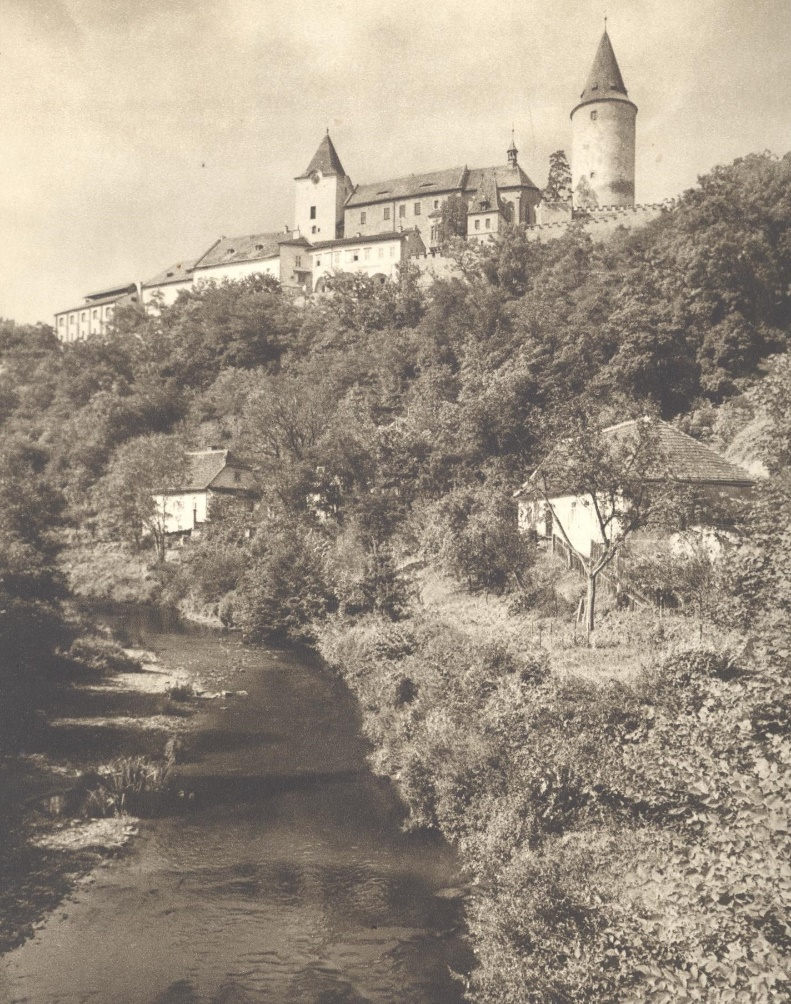 Rakovnický potok protékající okolo hradu Křivoklát (L. Sitenský: NA ŘEKU…! 1957)