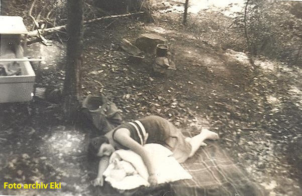 Babička tehdy v rámci popisovaného výletu sice bydlela v Záhoří v tom známém hotelu u Svatojánských proudů (kde už v následujícím roce 1935 agenti gestapa zabili antifašistu ing. Formise, který se tu skrýval s vysílačkou), ale jak je vidět z přiložené fotky, trempská příprava se nazapře.