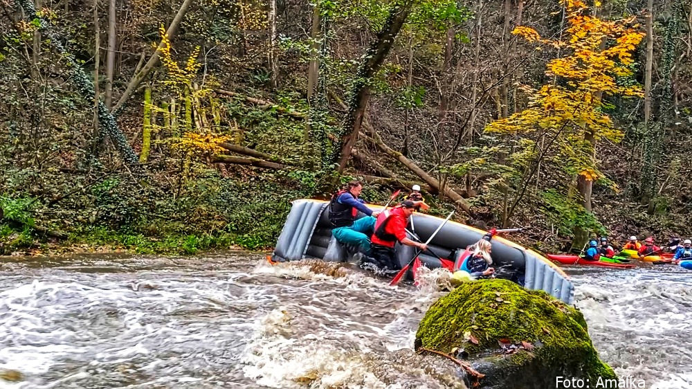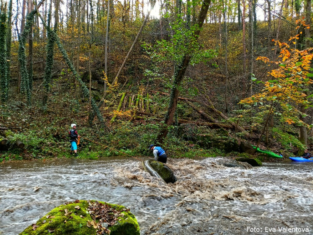 My jsme jeli ve skupině osmi vodáků na pálavách patřících výkonnostně někam mezi ně. Nejeli jsme na vodě poprvé, ale ani nejsme žádní profíci. První polovina cesty působila jako volné splouvání podzimní krajinou, slunce svítilo a přidalo na náladě. V druhé části jsme již museli trochu zabrat a u Martina se rozhodlo, kdo je kdo. Přímo uprostřed peřeje stojí kámen, který k sobě přitahuje lodě jako magnet a každou, která má tu drzost přijet až k němu, nemilosrdně cvakne.