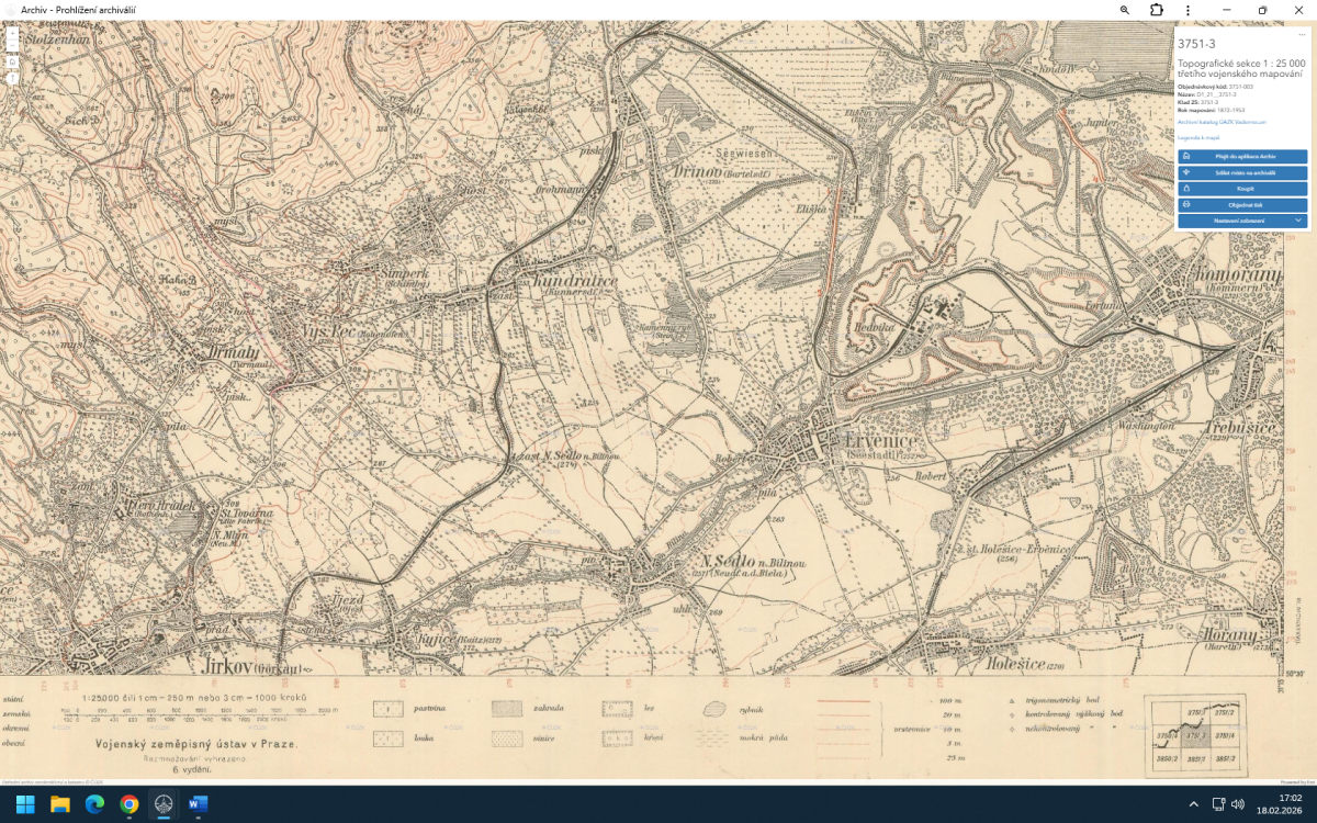 Historická mapa z tzv. 3. vojenského mapování (Geoportál CUZK)