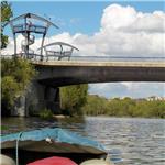 Pozor v Liblíně (ř. km 101,5)! Probíhá úplná destrukce mostu Liblín a v proudnici trčí roxory a popa ...