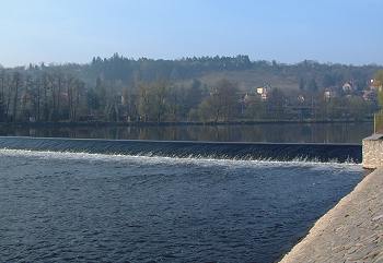 hať s prepustí vpravo přenést vpravo vysoký (m) 1,4 náhon vľavo, (sjízdný nově vybudovanou sportovní propustí) táborisko Dobřichovice 0,2 km |