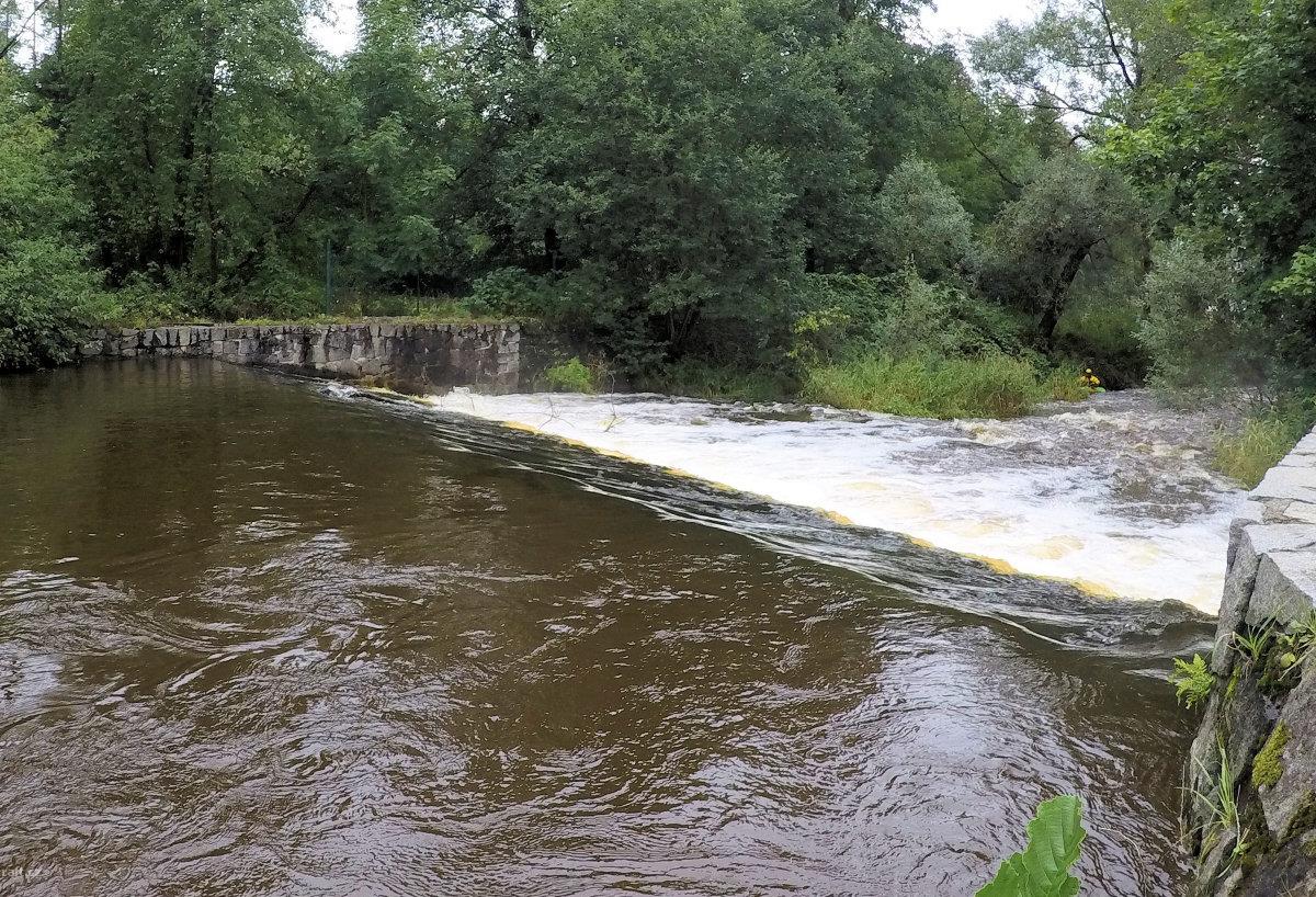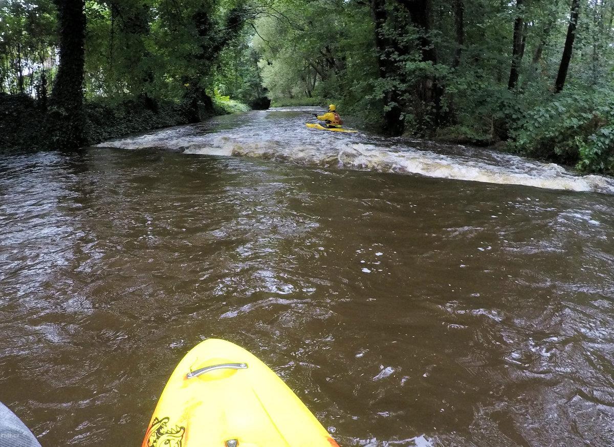 Blanice, úsek Záblatí/přehrada 8.6.2013, cca 9m3/s v Podedvorech, po povodni rozbitý jez u Zábrdskéh ...