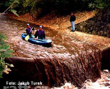 Horní tok: Lesní jez mezi Průhonicemi a Čestlicemi je zapadaný stromy, ale stále se dá sjet. Jez Fan ...