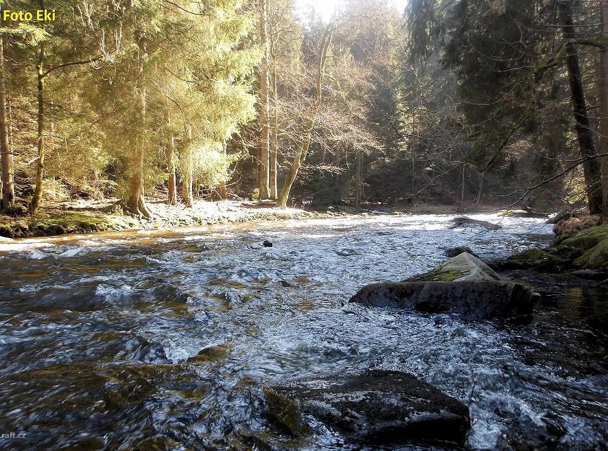 28.3. jsme jeli Divokou Orlici na otevřené lodi v úseku Trčkov nad lávkou -