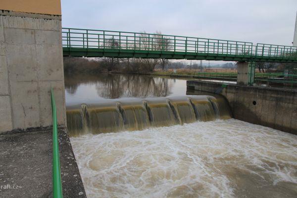 Na jezu Otradovice probíhají jakési stavební práce. Podjezí je zůženo zásypem, díky čemuž je válec p ...