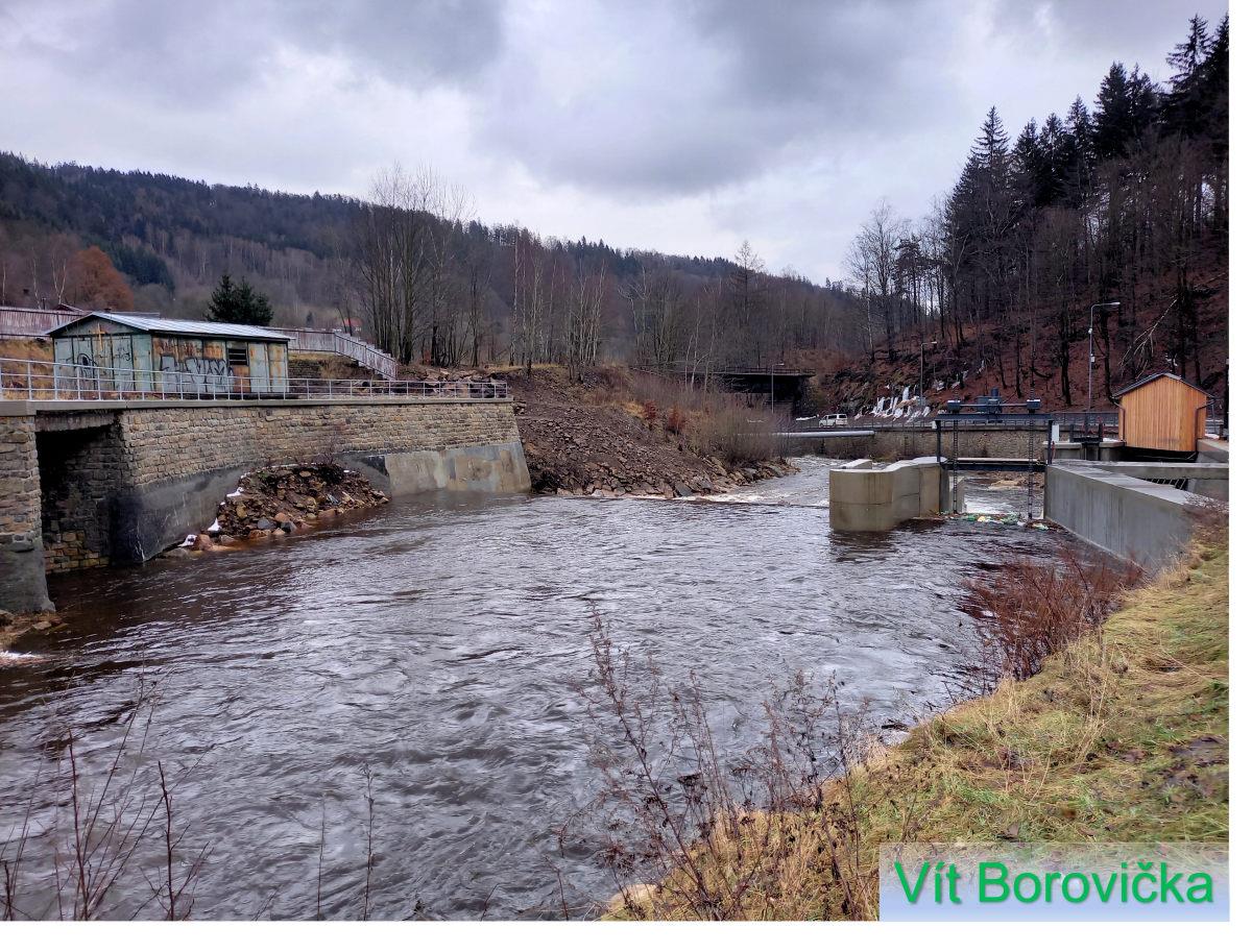 r.km 16,3 Vyústění náhona od jezu v Tanvaldu