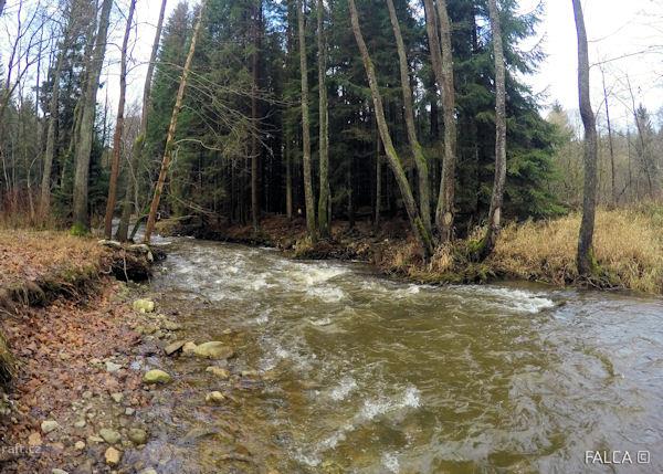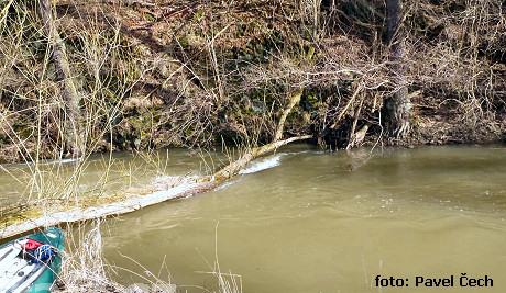 Včera za stavu 90 cm z výtoku ejpovického jezera do Nadryb na Berounce. Přenášeno 5 stromů (některé ...