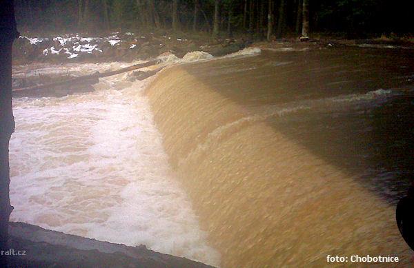 Včera za stavu 90 cm z výtoku ejpovického jezera do Nadryb na Berounce. Přenášeno 5 stromů (některé ...