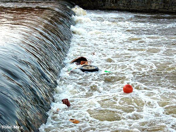 Litavka 31.7., vody již málo 22cm, jez na km19,1 po povodni je úplně protržený, před Lochovicemi je ...