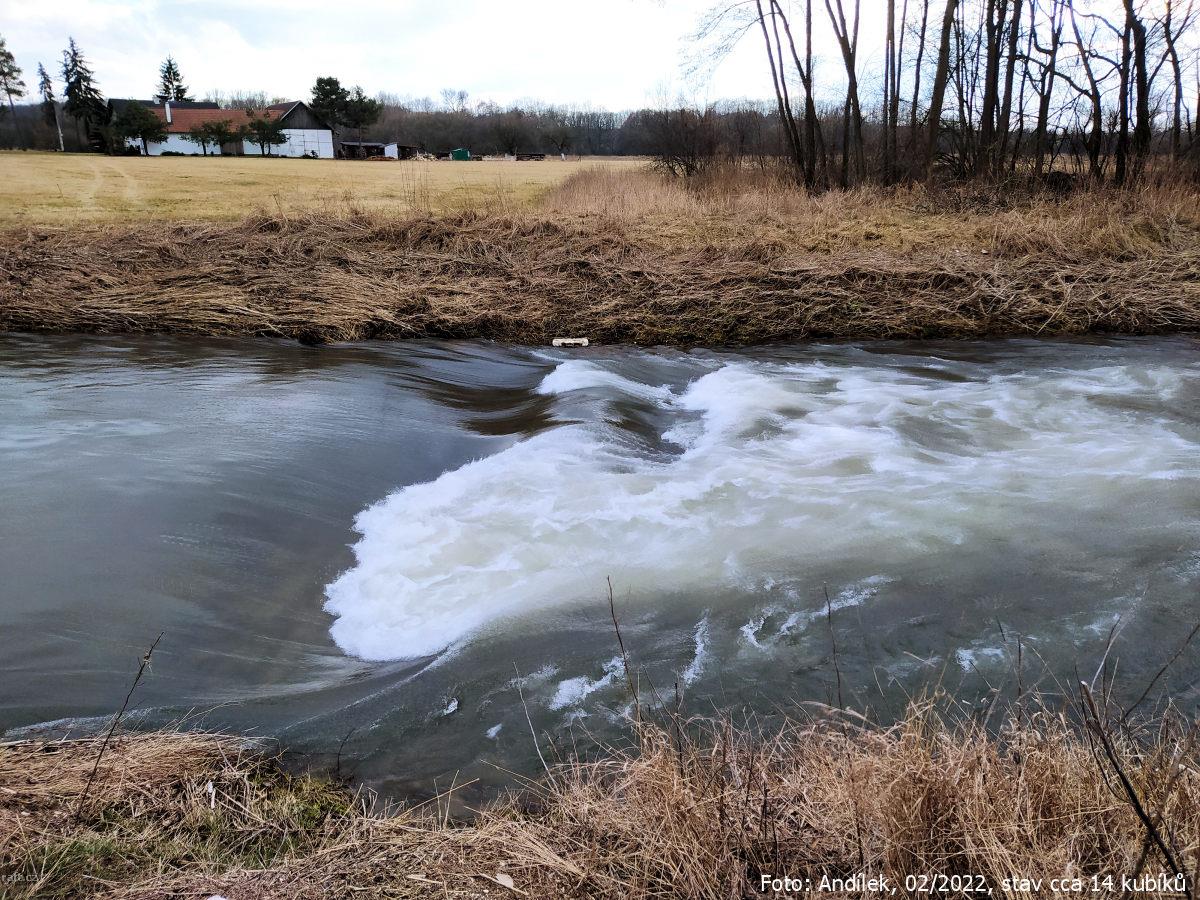 r.km 54,2 Jez u Velkých Petrovic, stav: 78 cm, 6.15 m3/s na vodočtu v Maršově