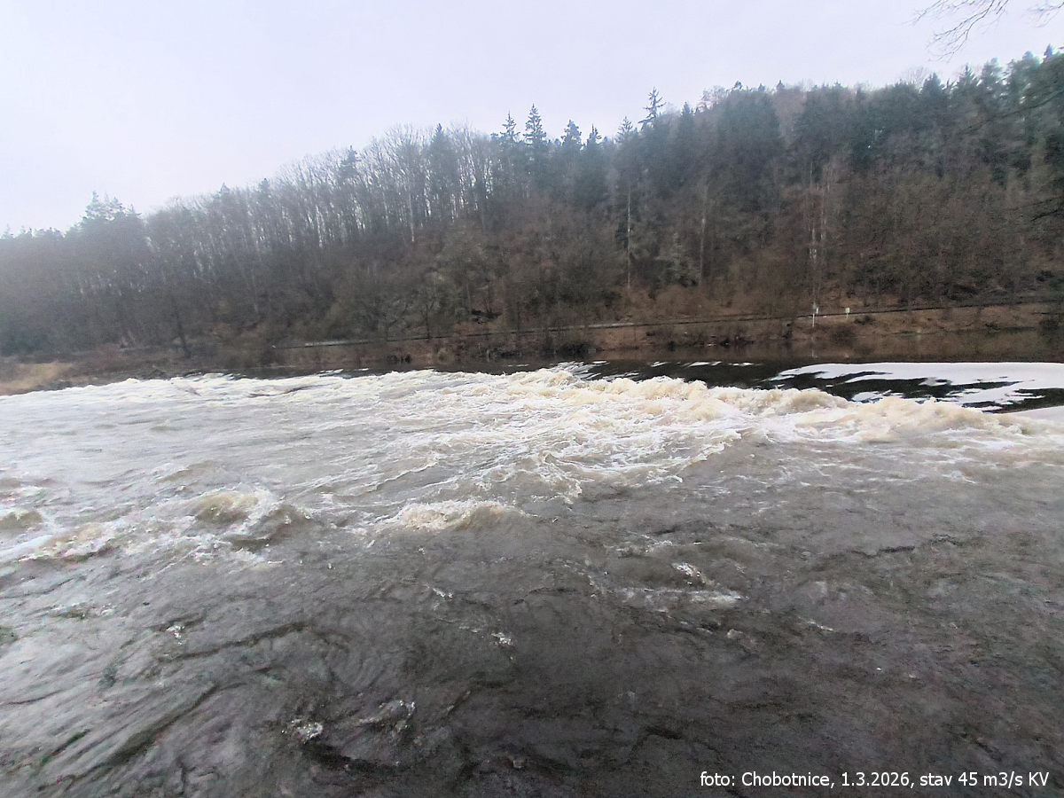 jez přenést vpravo vysoký (m) 3,1 nezjazdné, dlhý náhon vpravo, Brozany vľavo, táborisko 1 km vľavo, přítok vpravo Čepel (byl sjet již v r. 1928) - vlévá se do náhona elektrárny, z řeky není patrný 1,1 km |