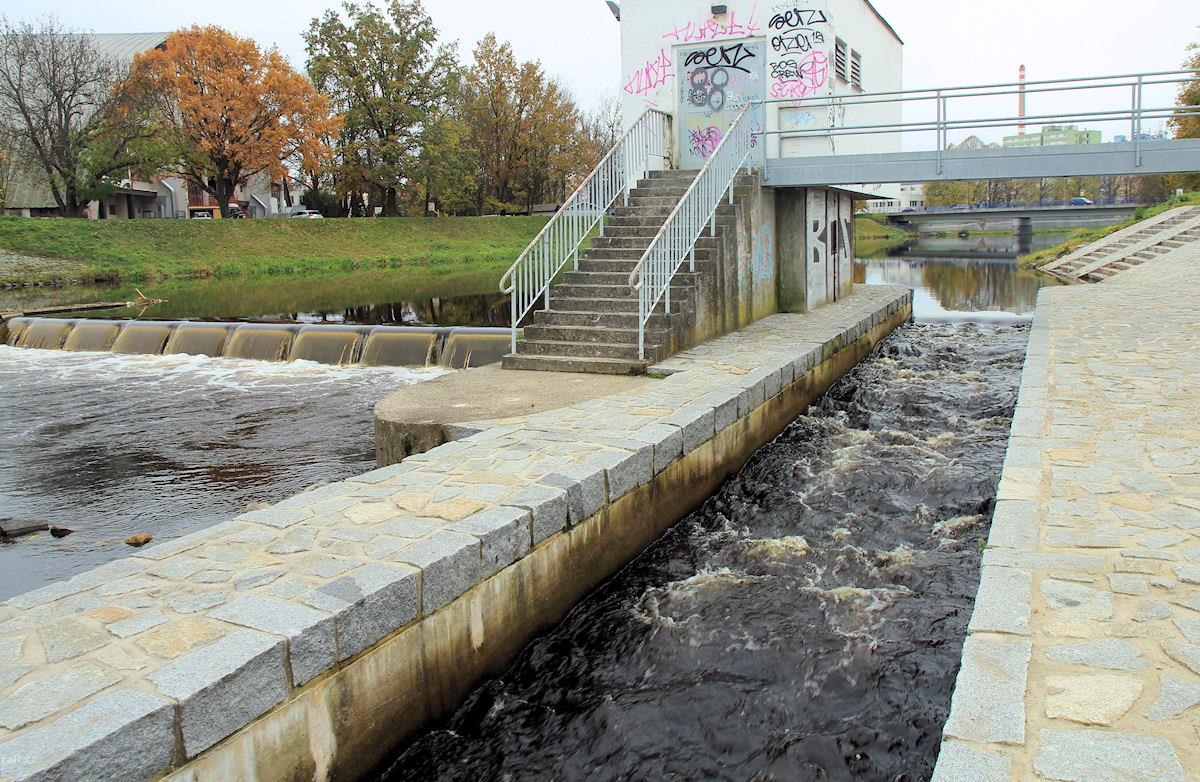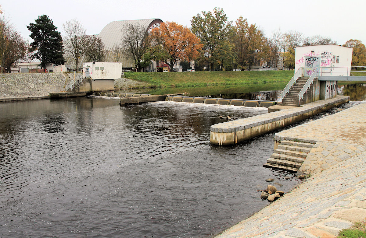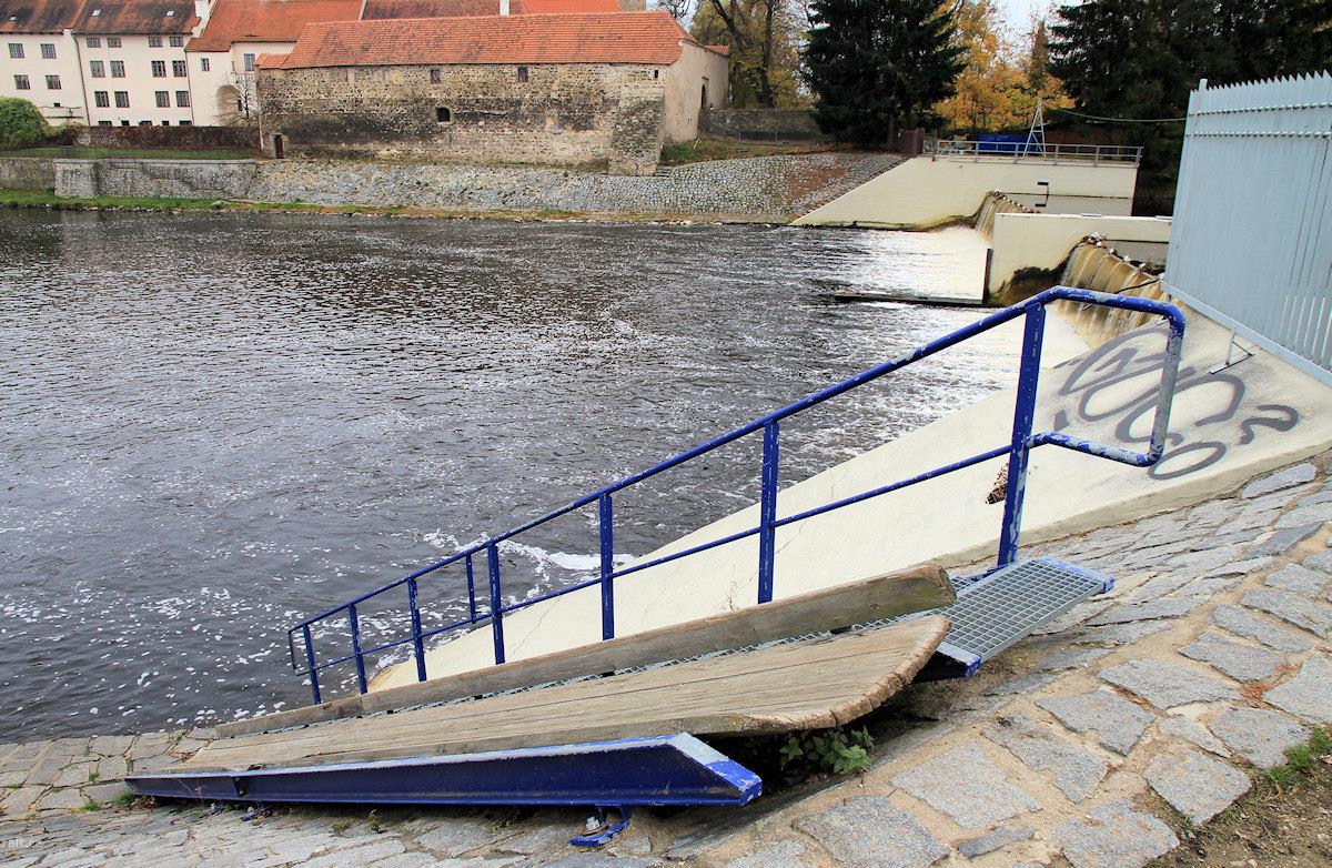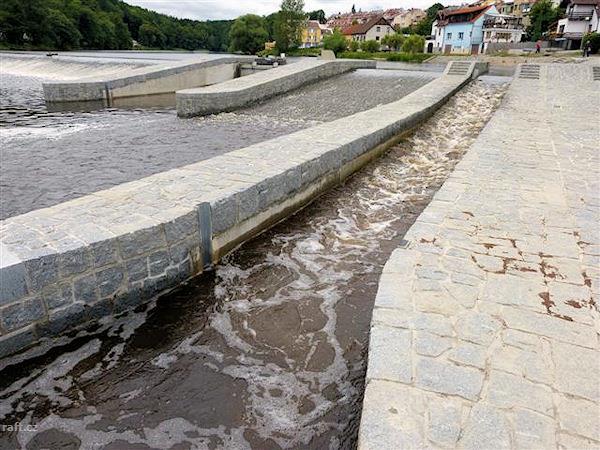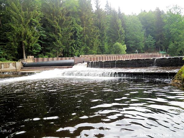 Z důvodu přestavby je koruna jezu v celé šíři snížena (odbourána ...