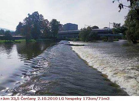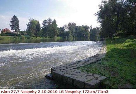 Jez Podělusy je zcela opravený a průjezdný sportovní šlajsnou u pravého břehu. Před šlajsnou jsou ka ...