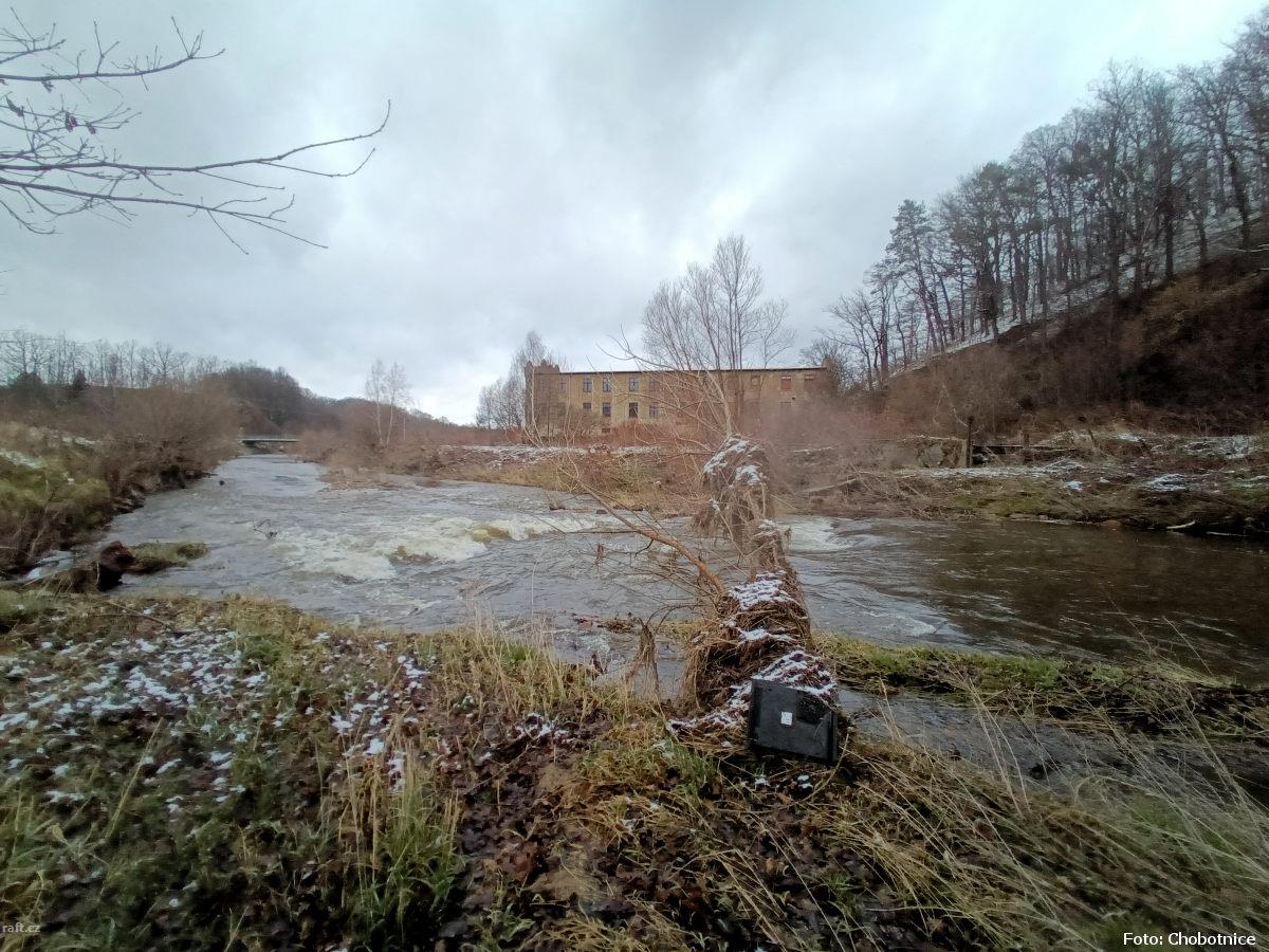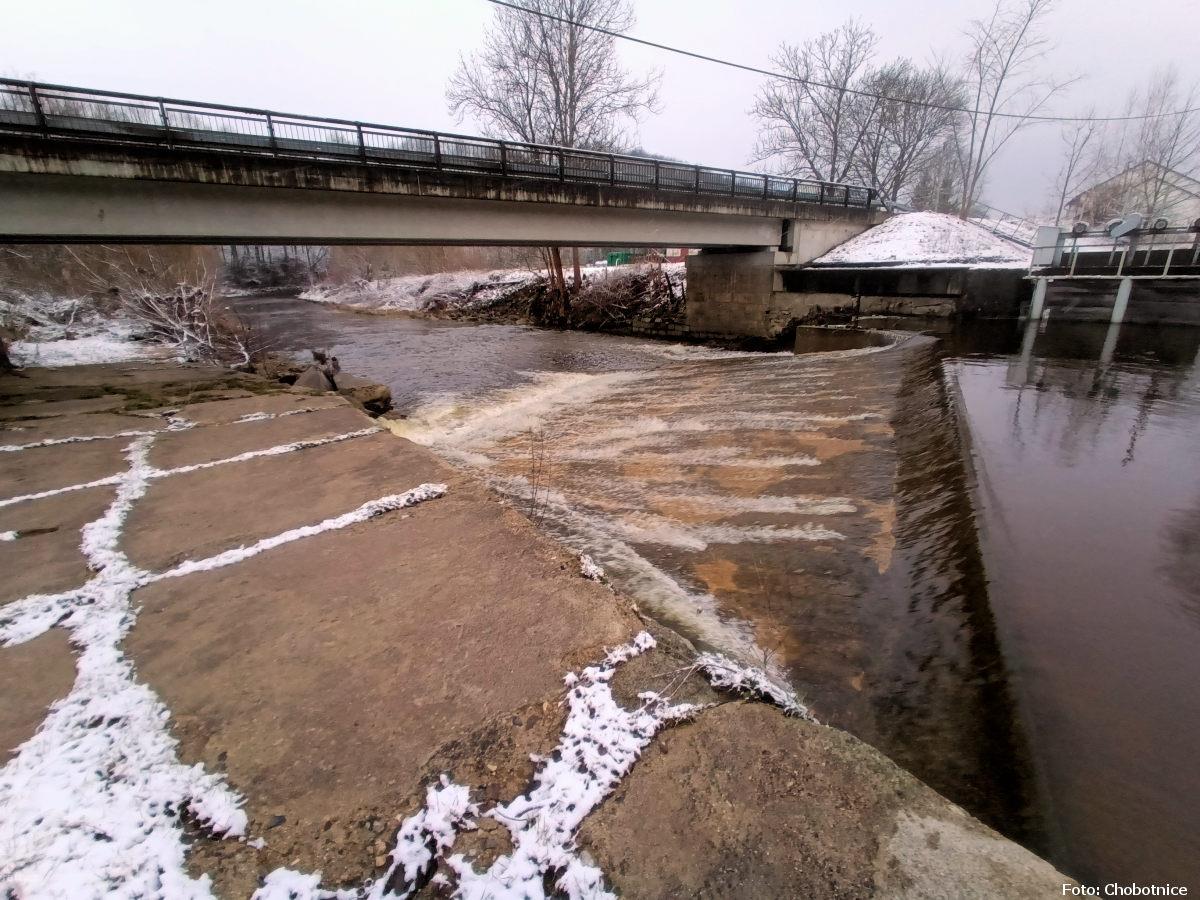 r.km 6,8 Zbytky jezu za průtoku 5 kubíků v Předlánce 21.12.2024