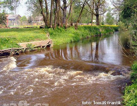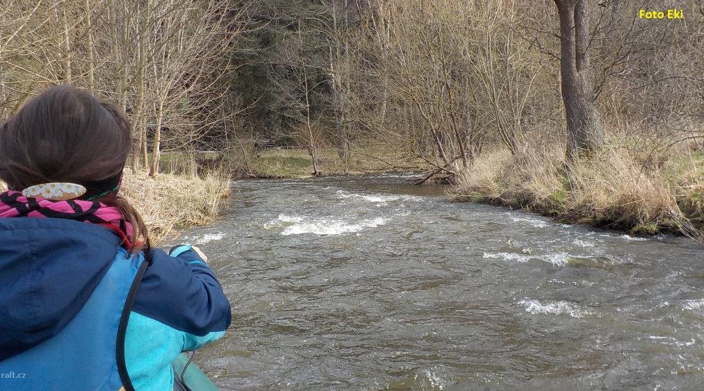 r.km ,0 Peřejky na Tiché před ústím, v pozadí zprava přitéká Mže