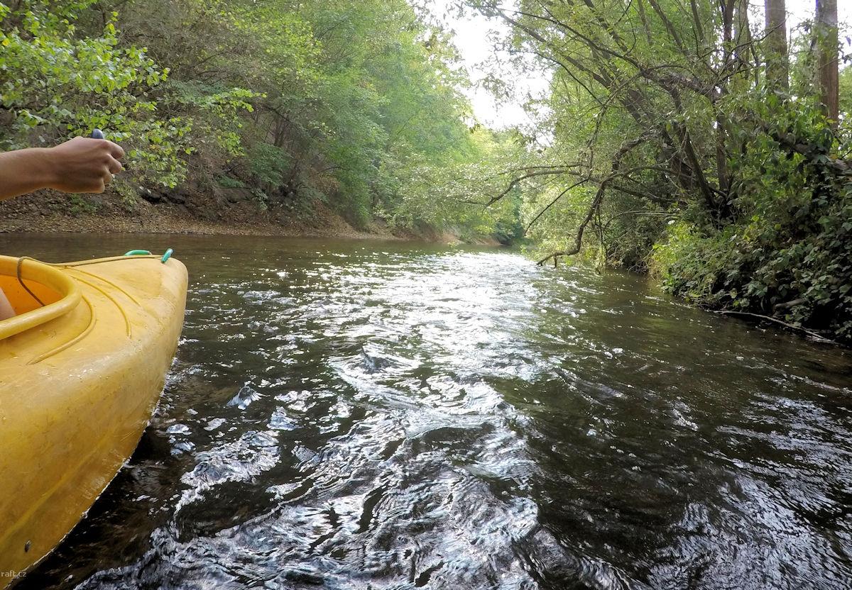 Stav po povodni - úsek od mostu na km 30,7 až po jez na km 14,9. při průtoku 12 kubíků. Jen jeden pa ...