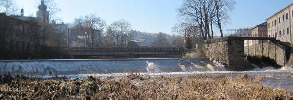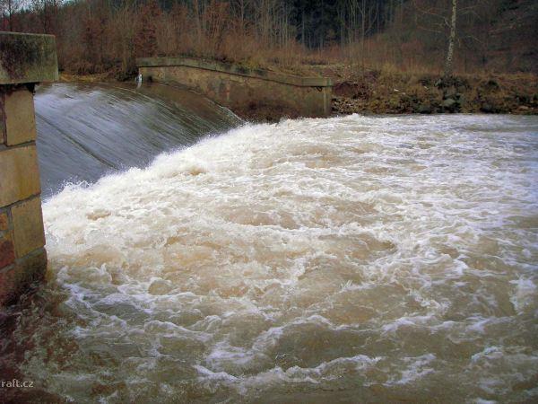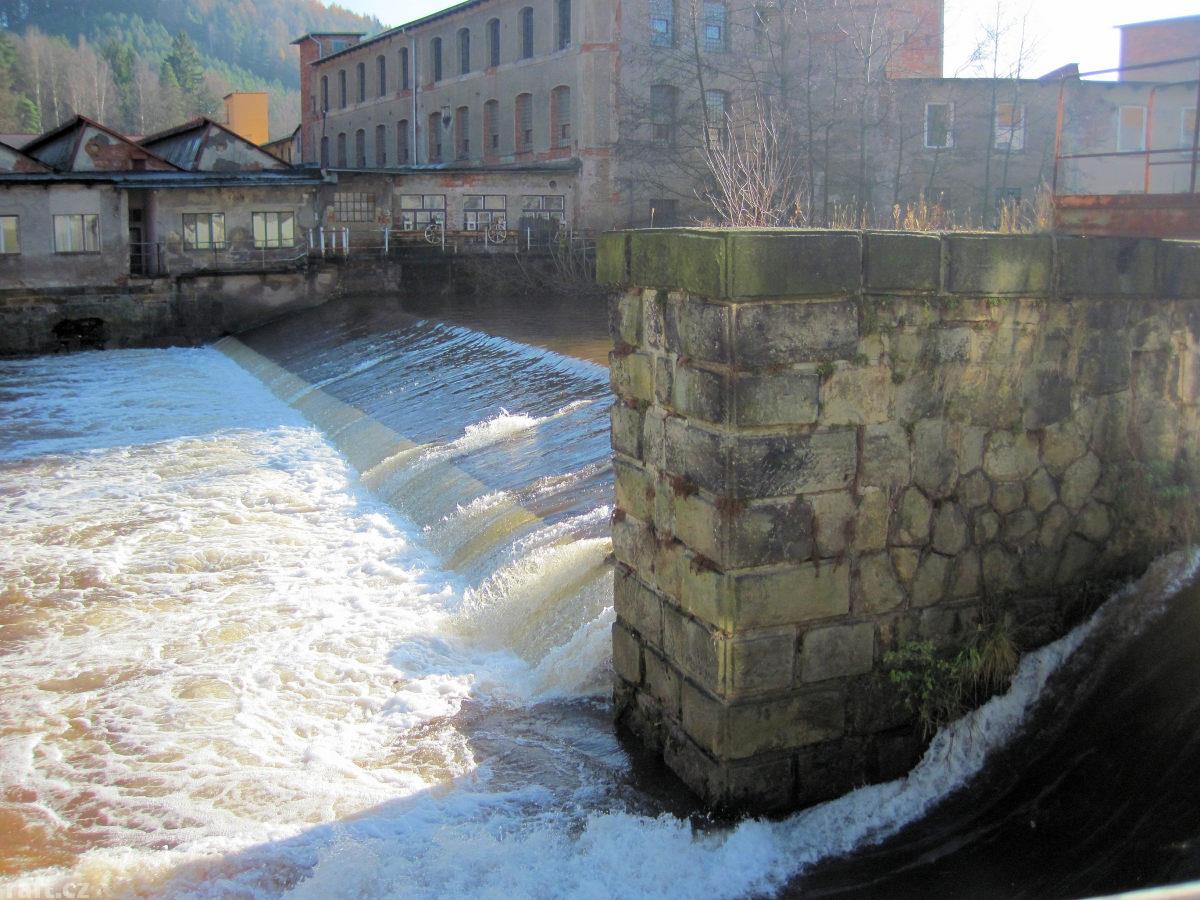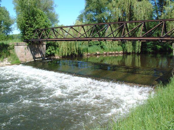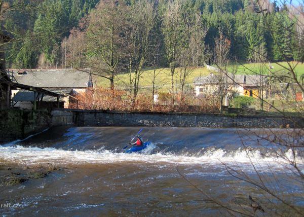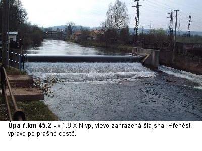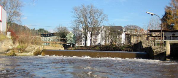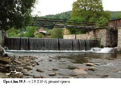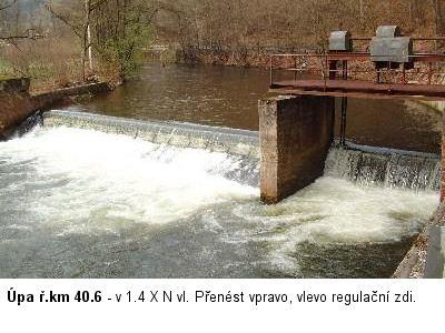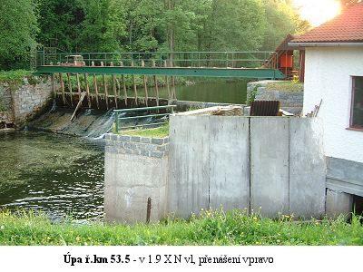 Přestavuje se jez na km 41,8 Bohuslavice nad Úpou. Elektrárna bude vlevo, přenášet asi půjde jen vpr ...